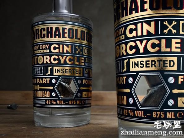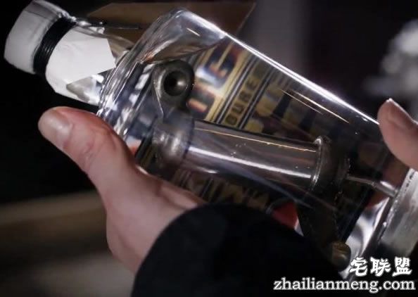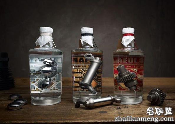 Ehinger 独特的想法就是将摩托车零件放入杜松子酒中,零件被彻底清洗干净,被焊在瓶子的底部,确保它不会移动。