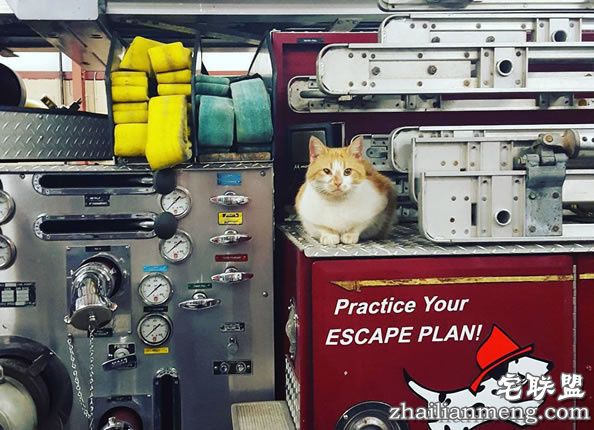 这只喵星人被取名为“Flame”,平常在消防局内到处走,也会躺在消防车上静静地陪队员办公。