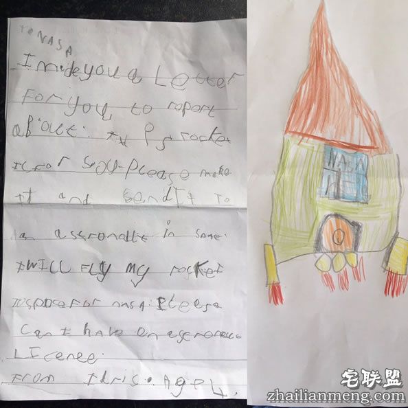 英国一4岁小男孩Idris Hylton 寄信给美国NASA,附上用彩色铅笔画的“火箭设计图”,并表示自己很想当航天员,没想到真的收到回信。