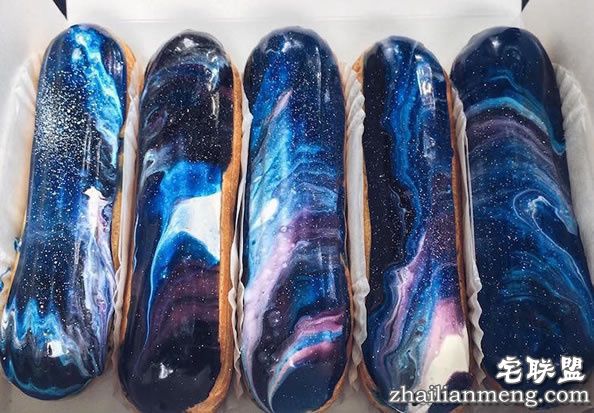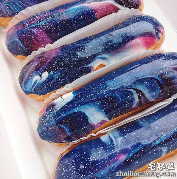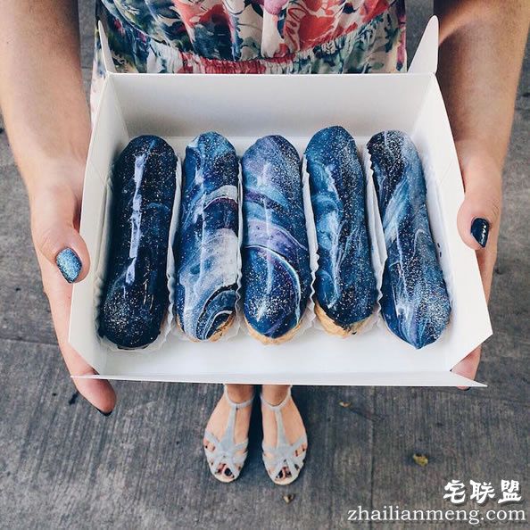 “银河系”面包灵感来自哈勃太空望远镜的系列照片,面包上这一层其实是糖衣,拥有各种色调,如蓝色、紫色和粉红色打造成的星系漩涡。