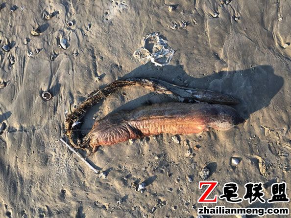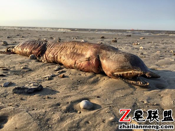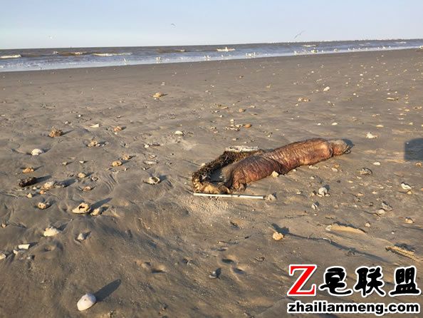 美国一名女网友在Texas City 的海边上发现一具奇怪动物的尸体,让她感到好奇。
