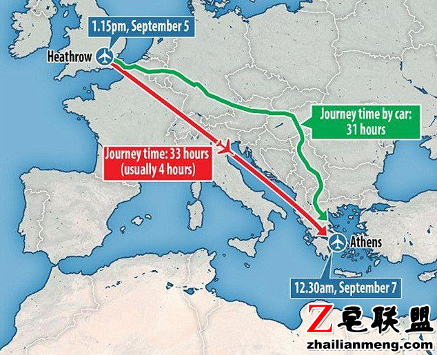 现代社会,最快的交通工具目前还是飞机。然而,英国一名退休男子本周在从伦敦前往希腊雅典旅游时,原本 4 小时的飞机却花了 33 小时,期间换了 4 架飞机,其中一架还在空中着火了。如果开车走这段旅程,大不了也就 31 个小时。