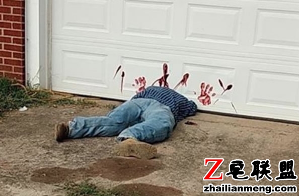 他准备了一具真人大小的稻草人,还细心地帮它穿了上衣、牛仔裤以及皮鞋,并让假人以正面朝下的姿势趴在车库前的空地。