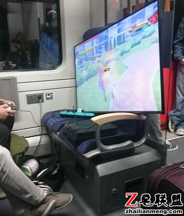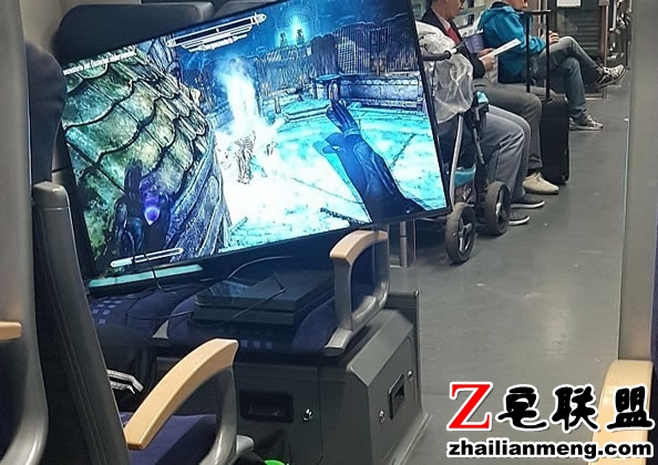 由于距离实在太远,所以列车的坐位旁都附有插座供乘客使用电子物品, 但没想到却被这名男子用来打游戏,可不是手机游戏,这大家伙,一般人绝对想不到。