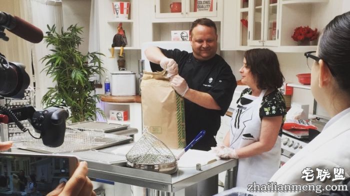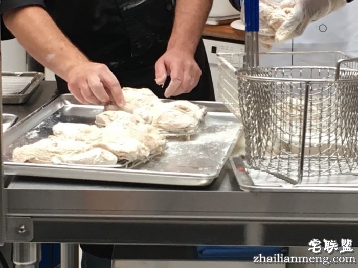 先来看看肯德基美国区总厨 Bob Das 为演员 Rachel Dratch 所演示的炸鸡制作过程吧: