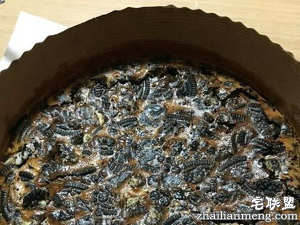 日本最近有位网友尝试烤一个OREO 芝士蛋糕,结果他把OREO 饼干捏碎,烤出来的成品十分惊人,连家人看了都以为是虫虫蛋糕。