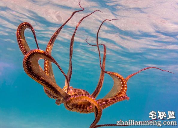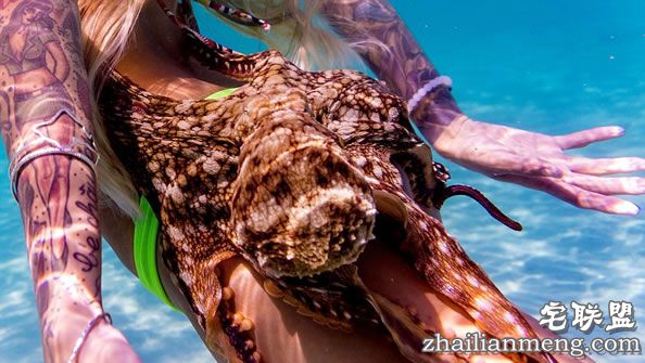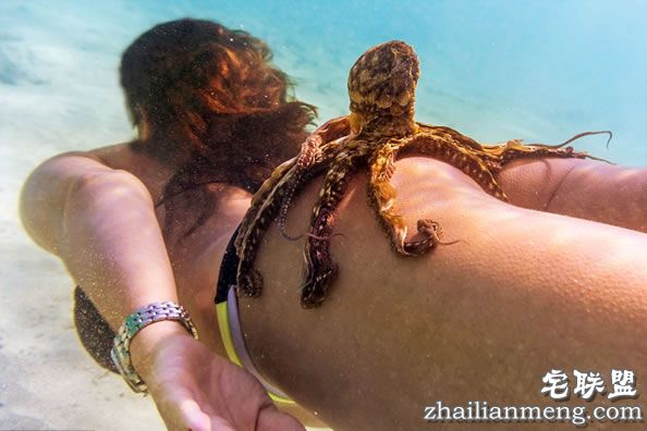 到海里游泳的时候免不了看到一些海洋动物,可是如果碰到章鱼呢,他们可能会趴到你身上跟你一起游泳哦~不知道被章鱼吸屁股是种怎样的体验~