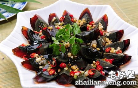 做法:皮蛋去壳,每个切成8瓣,放入盆中;加入酱油、醋、香油、姜粒和辣椒油,拌匀装盘即可。