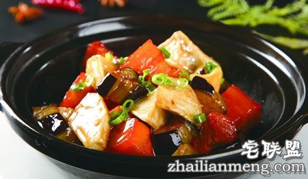 做法:茄子,土豆切块分别用右煎成金黄色。锅内加少许油,放入葱姜炸出香味,倒入土豆翻炒一会,倒入茄子,加入酱油炒匀,倒入少量水略闷一会儿。之后加入柿子椒块,在放入白糖、盐调味,用水淀粉勾芡,倒入蒜末略炒后出锅