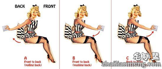 所以你可以用A或B (前往后),只要动作不要太快就好,但绝对不要用C (后往前)!