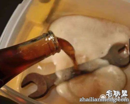 可乐中含有碳酸,能够与生锈的铁氧化产生反应。如果生锈的面积较大,还可以把整个工具完全浸泡在可乐中,第二天拿出来擦洗即可光亮如新。连生锈的硬币也可以这样做。