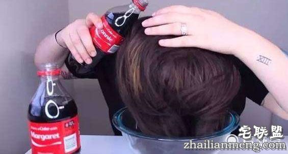 ▼让头髮颜色变淡。刚染的头髮颜色很重,用可乐洗一遍头,颜色就能褪得浅一些,更自然。