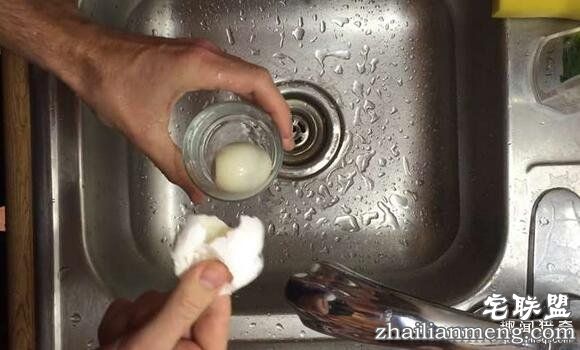 ▼步骤四:十秒后把手打开,你会发现蛋壳神奇的和鸡蛋分离了!