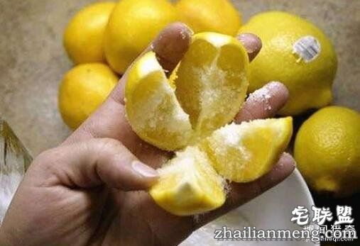 ▼在柠檬上呈十字状切两刀,将它切成4部分,但不要彻底切开,再撒上一点盐,然后把它摆放在厨房中。切开的柠檬能够散发清新的气味,杀灭厨房中的细菌。