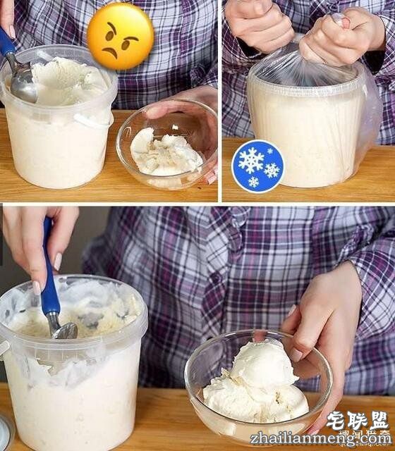▼7.保存冰淇淋:用塑胶袋装冰淇淋桶,并封好口,下一次吃更加柔软。
