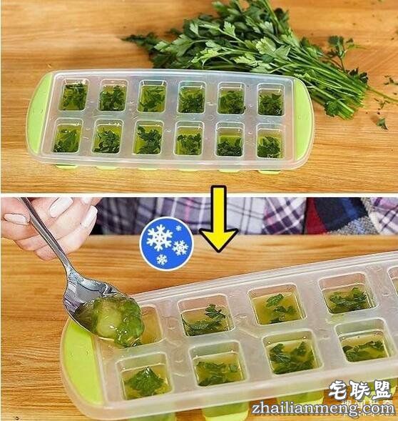 ▼9.保存橄榄油和香菜:将香菜和橄榄油放在制冰盒里,冻成冰块后延长保质期,香菜味道还会更好。