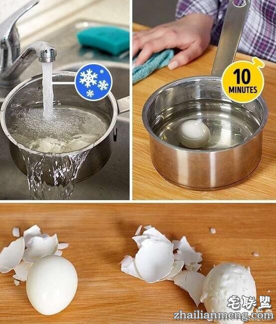 ▼4.快速剥鸡蛋:将水煮蛋从热水中拿出来后,放在冷水中冰10分钟。