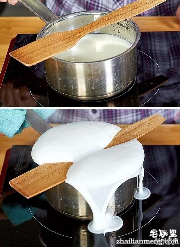 结果:牛奶仍旧溢出来,木勺根本没有用。