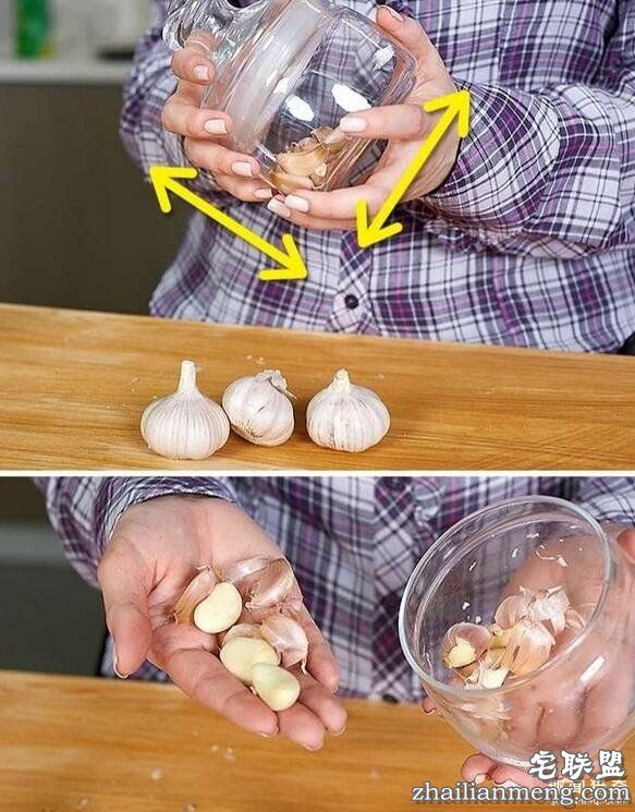 ▼8.快速剥蒜:将打算放进玻璃罐,用力摇晃后更容易剥皮。