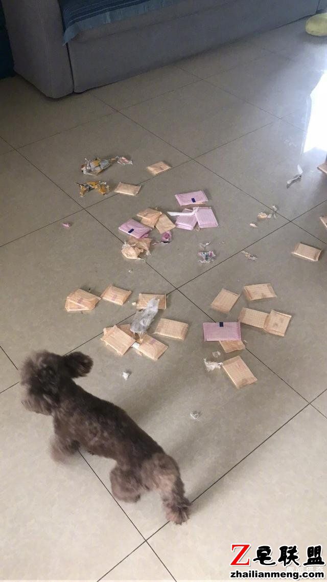 小图还以为狗子们祸祸了一地人民币,可是仔细一看居然是女主人的大姨妈巾......狗子们,你们撕家撕出新天地了嘛?!这事儿可有难度啊!哈哈哈哈