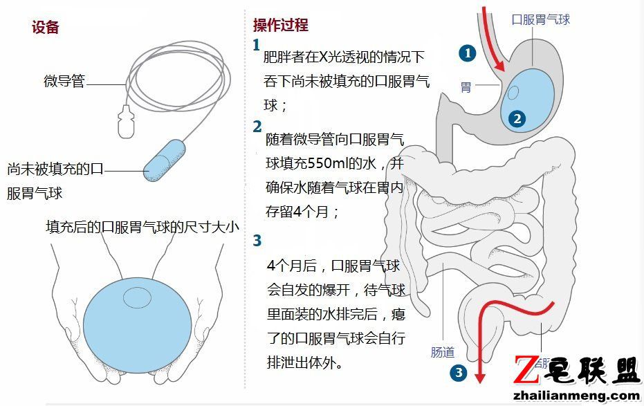 另外,值得一提的是和缩胃手术不同,口服胃气球对胃部的作用是暂时性的,4个月后,口服胃气球会自己爆开,释放完毕里面盛的水后,瘪了的气球会被人体自然的排出体外。