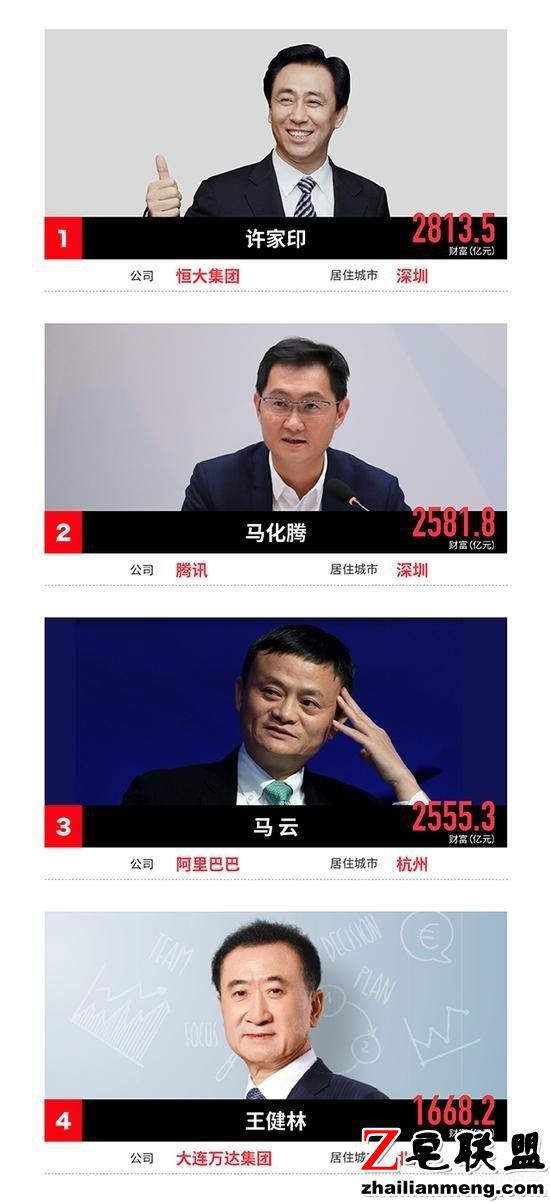 位居本榜单第2名的是马化腾(又名Pony Ma)。马化腾的财富猛增了近57%,达到2581.8亿元。而马云排在第三位,财富净值增长了超过三分之一,达到2555.3亿元。而第四是大连万达集团董事长王健林,财富净值为1,668.2亿元,下跌近542.8亿元。OsW宅联盟 - 宅男福利社
