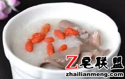 做法:枸杞子10克,猪肾一个,粳米100克,葱姜食盐少许,同煮成粥。有益肾阴、补肾阳、固精强腰的作用,适用于肾虚劳损,阴阳俱亏所致的腰脊疼痛、腰膝酸软、腿足痿弱、头晕耳鸣等。