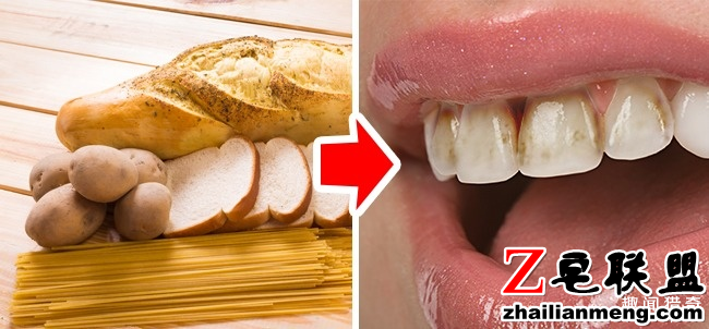 淀粉类食物会黏在牙齿上,形成牙菌斑,不仅如此,淀粉接触唾液会变成糖,从而造成蛀牙。