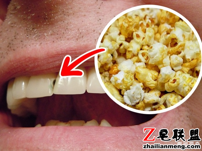 吃爆米花的时候总是会有一些没有爆开的,又黑又硬,它会对牙冠造成伤害。