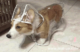 柯基第一次穿雨衣,被定身了