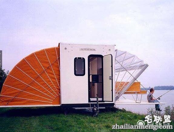 它本身的名称《De Markies》,其实就有露营的意思在里面,而它有一个变形的攻能,就是可以打开两侧的墙壁,变成地板。