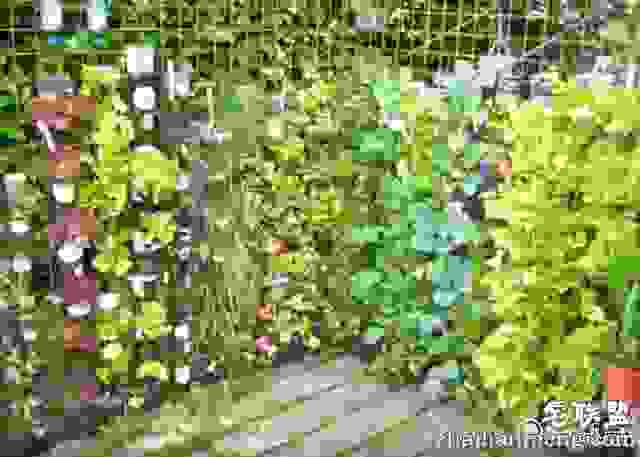 而种子不到几个礼拜便都发芽成苗,隔了一年后花园青翠繁盛,景色令人惊叹!!其实在家中的阳台上也可以这么种植,把可乐瓶或者pvc管固定在阳台的栏杆上,把侧面开上小口,把蔬菜或者花卉的种子种进去就行。