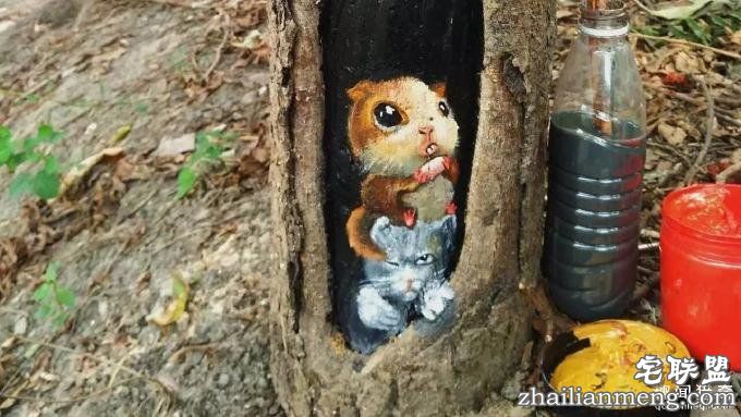 Goomrr 告诉说他来自中国安徽合肥,主要利用一些业余时间来画这些树洞画,算是一种公益。而每当他在画的时候,常常会有路人驻足围观,路人们对他创作的赞赏也是让他坚持去做下去的动力。