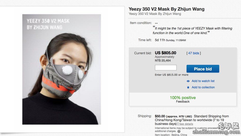 ▲王志钧设计神鞋口罩,获得了名气之外,鞋子的价值也飙升4倍之多。(图/翻摄自ebay)