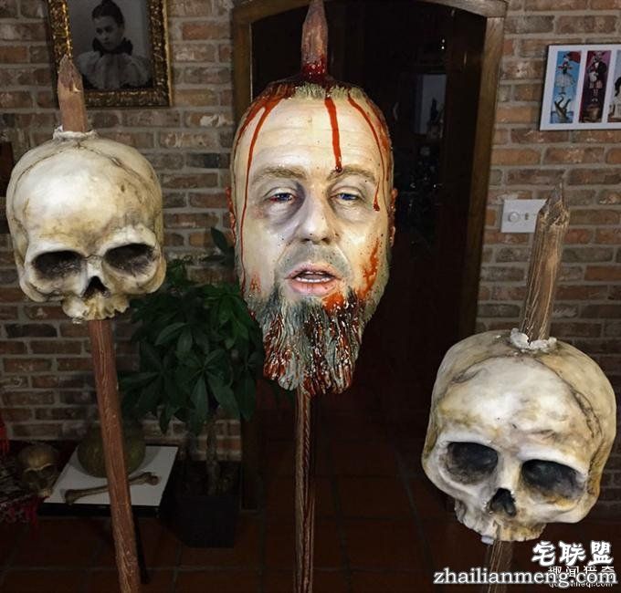 ▼刺破头颅的蛋糕,头顶处还不时的冒出鲜血,旁边的骷髅头就是很久后的样子,这样的重口味蛋糕真是怕怕的。