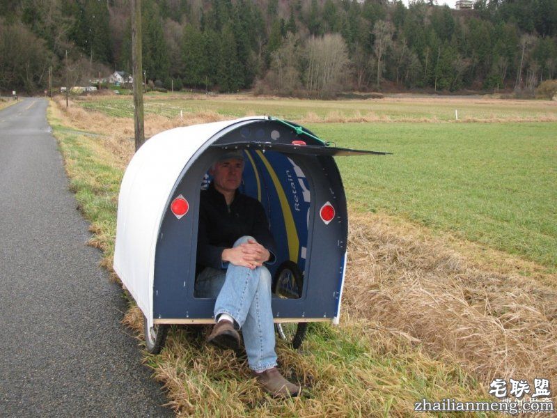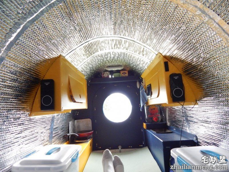 可以看到,这个胶囊式的脚踏车尾厢相当迷你。可是别看它的空间小,其实里面的空间是非常实用的,至少它容得下保罗在里面安全无恙舒适的睡上一个晚上。