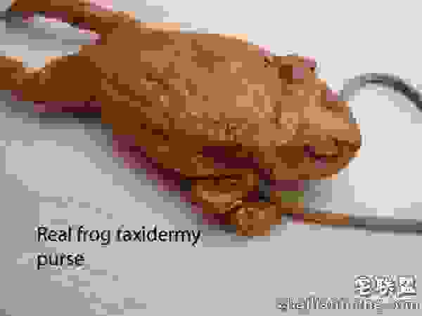 是的,你没有看错!这真的是用一个风干的青蛙标本做成的钱包。