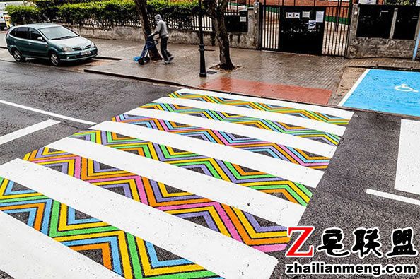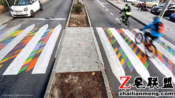 来自保加利亚艺术家Christo Guelov 改造了西班牙马德里部分斑马线,让它们更加艺术,更加显眼,让人们更愿意走这五颜六色的斑马线。