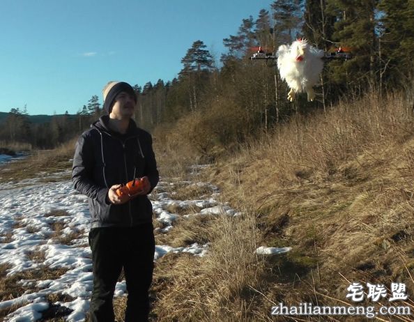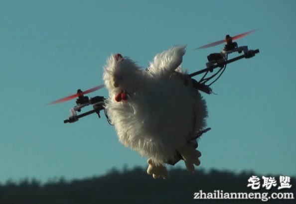 这架无人机穿上了母鸡飞行服,这款母鸡飞行服一穿上无人机设备就像是从动画片中飞出来的人物,但是还具有实际的航拍和飞行功能。