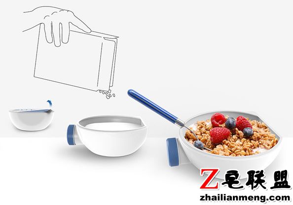 一碗牛奶麦片是很多人的早餐,一个碗倒上牛奶加上麦片,简单又快捷。而今天这件设计让你更快捷,无需碗,直接倒上麦片就能食用。