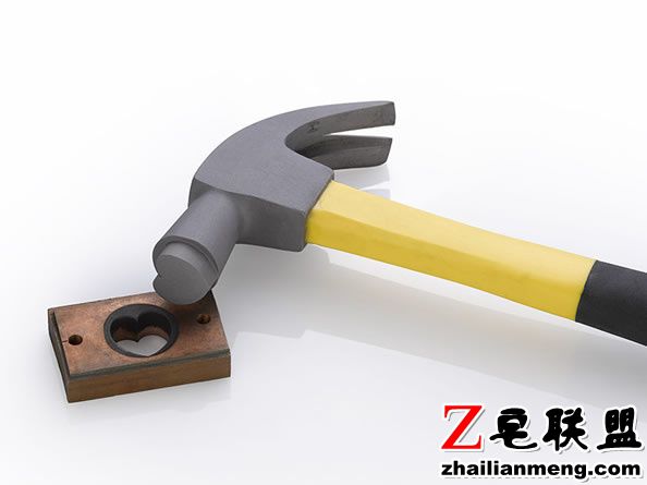 锤子钢材质的锤头被重新塑造成爱心的形状,而这把锤子也转变成了留下标记的工具。
